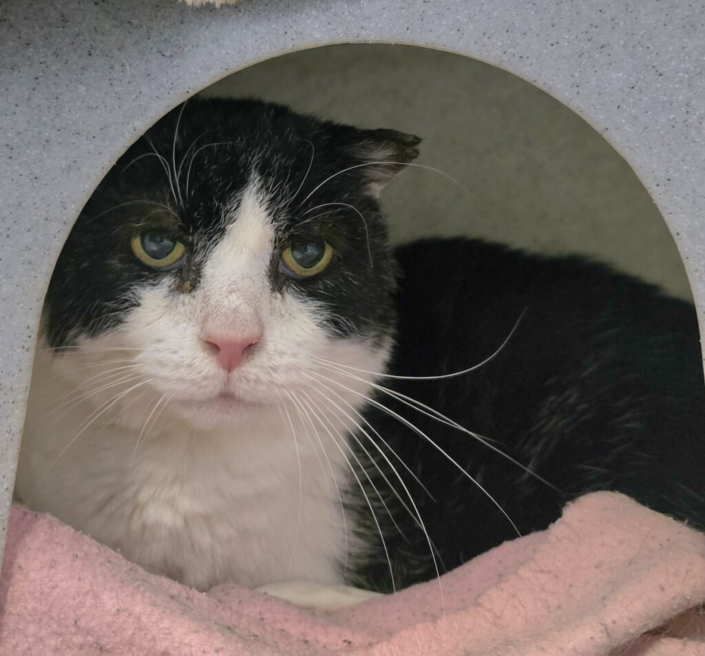 Billie is een oudere kater met een verleden dat we helaas niet helemaal kennen. Hij werd binnengebracht als zwerfdier, met enorme klitten op zijn rug. In het begin wisten we niet of hij tam was of niet — alles was nieuw en beangstigend voor hem.